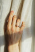 Sterling silver ring featuring a soft pink coral cabochon in a classic mid-century style prong setting. An easy everyday piece with subtle vintage charm.